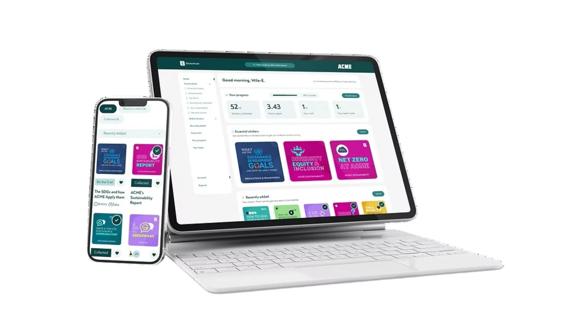 That’s why we’ve partnered with Stickerbook, a fun, mobile-friendly learning platform that makes sustainability simple, measurable, and achievable for small teams.